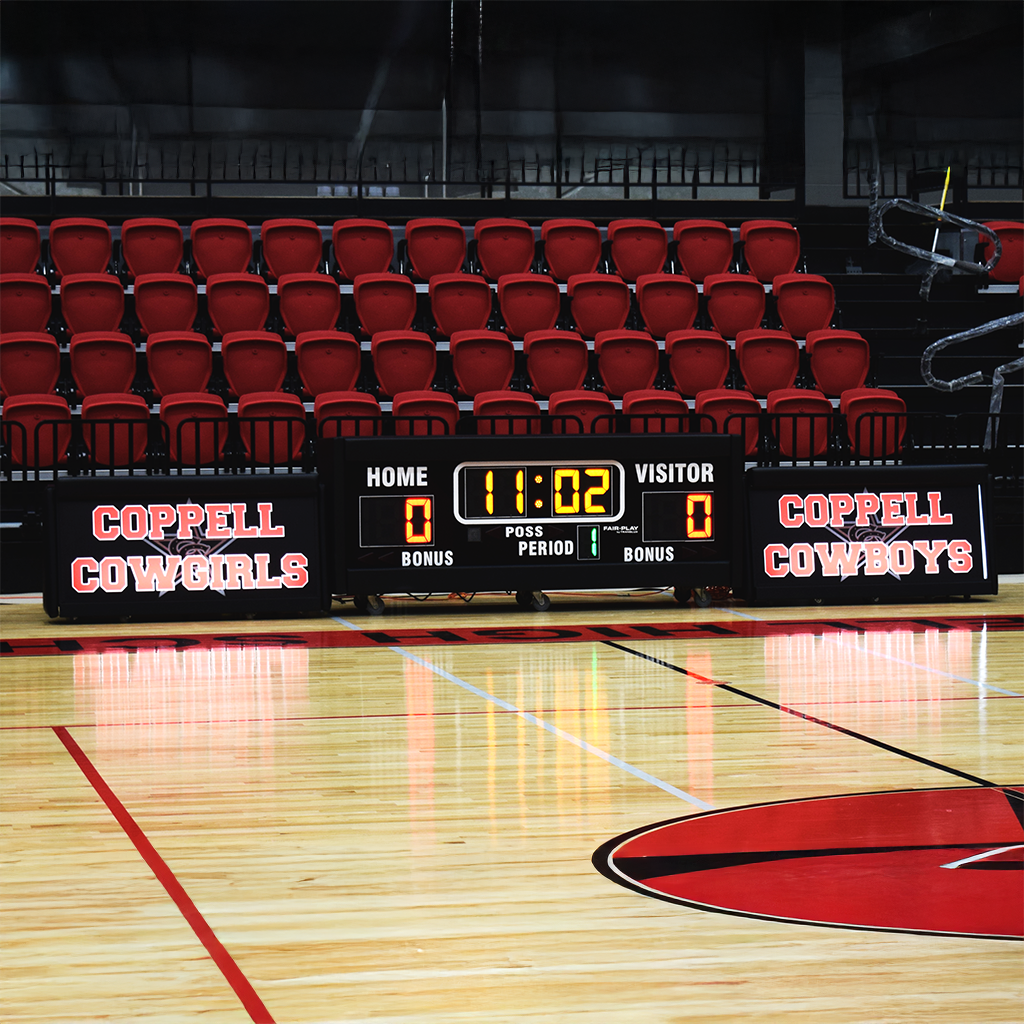 Fair-Play court side tables bring modern digital presentation to the center of the basketball experience. Designed for high schools, colleges, and professional venues, Fair-Play digital scorer’s tables combine game operations, sponsorship visibility, and high-impact LED display technology into one streamlined court side solution.