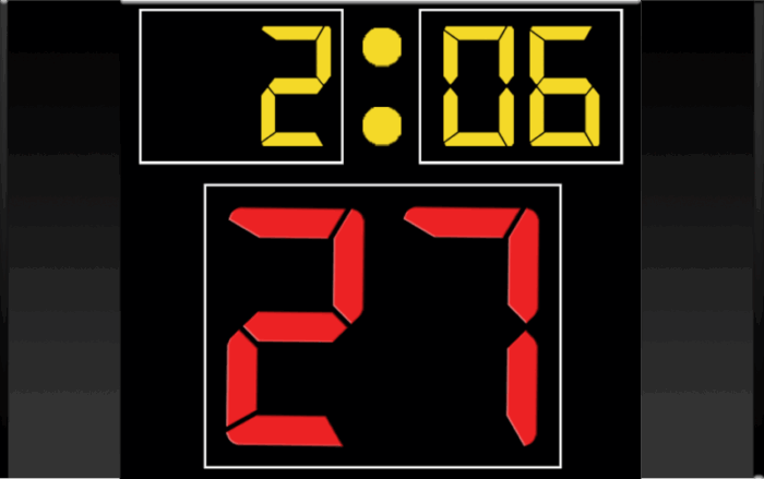 Three-sided display. Composed of a two-digit red display with an accompanying amber four-digit clock, which is typically used in basketball applications and mounted onto a backboard or wall. The package includes three displays, sold separately. MP-80/MP-70 controller is also required for use, order separately / not included in the package.