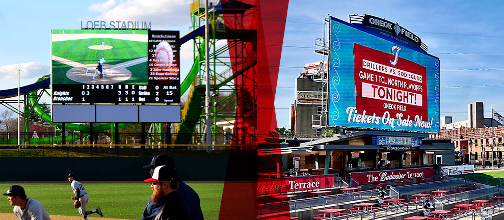 Whether you need a small indoor or large outdoor LED baseball scoreboard or softball scoreboard display, Fair-Play can meet your needs. We offer electronic baseball scoreboard displays in many sizes, to use in virtually any environment. We also provide a range of accessories to complement our scoreboards. These include pitch speed indicators, clocks, sound equipment and more, creating a comprehensive and integrated system perfect for your facility.