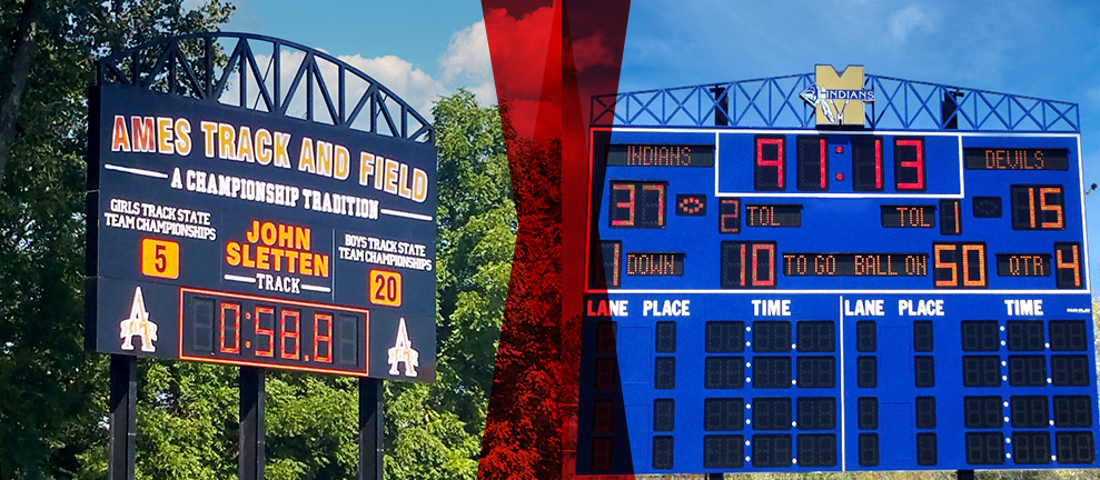 When you choose one of our scoreboards, you can choose the color of the main board as well as that of the trim. This ensures that the board will fit easily into your organization’s or venue’s visual identity. We offer several options for controlling these boards, from handheld switches to full control panels. When combined with one of our full-color LED digital displays, you will be able to add multimedia capabilities to show instant replays, sponsor messages, and more.